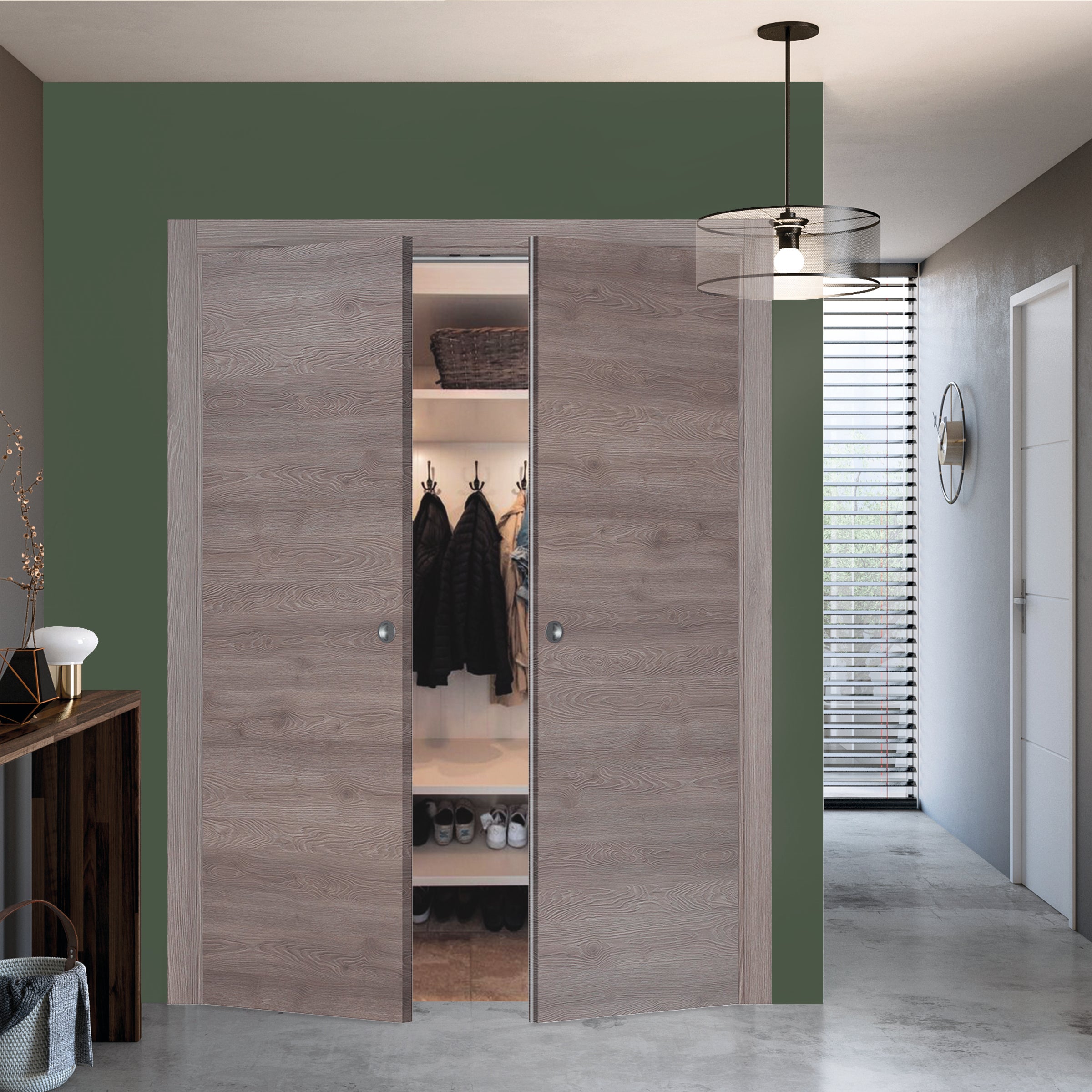 Porta armadio con apertura simultanea in legno dal colore pietra