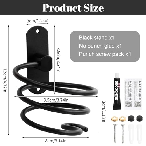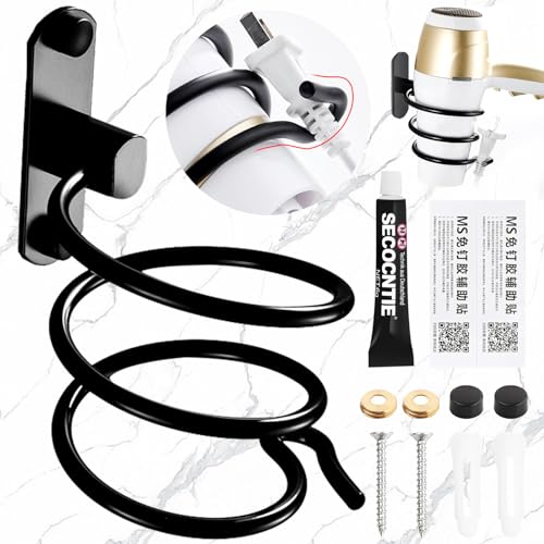 Porta Asciugacapelli, con Colla e Viti Senza Perforazione, Porta Asciugacapelli a Parete, Porta Asciugacapelli con Porta Spina, per Hotel, Bagno, WC, Barbiere