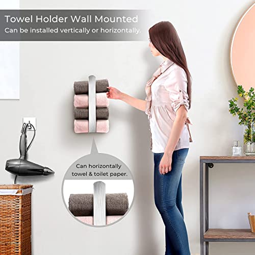 Porta Asciugamani Adesivo Bagno, Porta Salviette Bagno Adesivo, Porta Asciugamani Bagno da Parete, Portaasciugamano Appendi Salviette Bagno Adesivo (Argento, 37 CM)