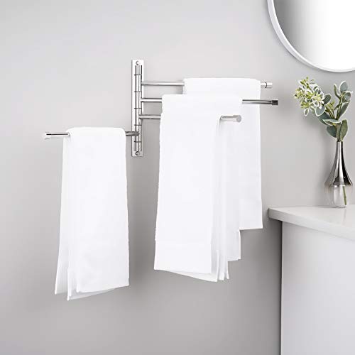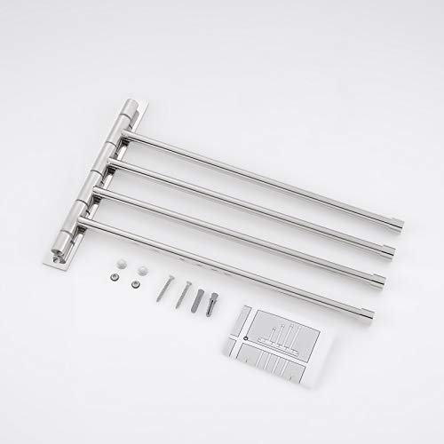 Dimensioni: lunghezza disponibile di ogni portasciugamani: 340 mm. Distanza tra i portasciugamani: 25 mm. Dimensioni base per montaggio a parete: 245 * 30 mm Quando non è in uso, puoi ruotare il portasciugamani da bagno fino a quando non è vicino al muro senza occupare spazio.