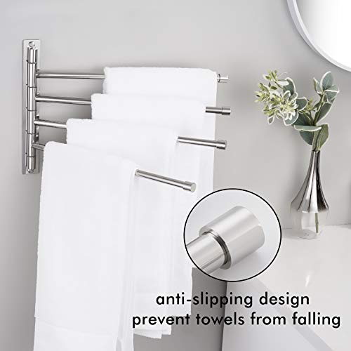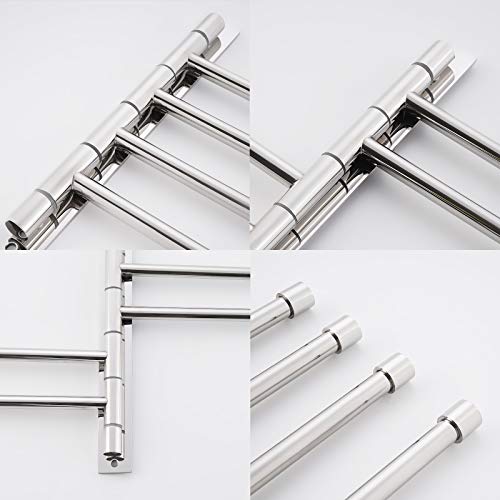 Design a 4 braccia: questo portasciugamani da bagno adotta un design a 4 braccia e uno spazio di 25 mm tra i portasciugamani e può essere ruotato di 180 gradi, il che offre spazio sufficiente per consentire agli asciugamani o agli asciugamani da bagno di asciugarsi più velocemente.