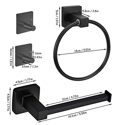 Porta Asciugamani Bagno, Porta Carta Igienica, Ganci Adesivi, Set Bagno Accessori Completo Acciaio Inossidabile, Nero