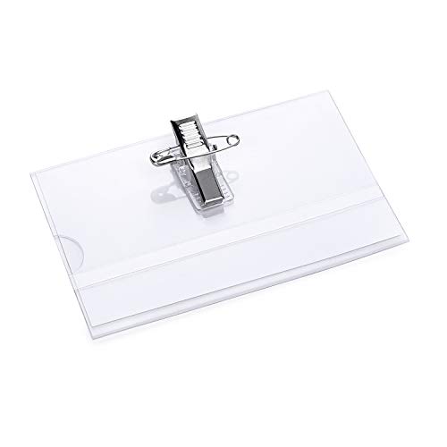 dotato di clip e spilla da balia. Dimensioni: 9 x 5,7 cm. Con questo prodotto riceverete 10 porta badge.