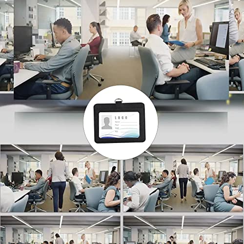 Porta Badge,Porta Badge da Collo,Porta Carte ID Cinturino con Cordino in Nylon,Porta Tesserino Verticale per Ufficio Scuola Esposizione Pass Autobus,Verticale Porta Badge Per Lavoro,Nero