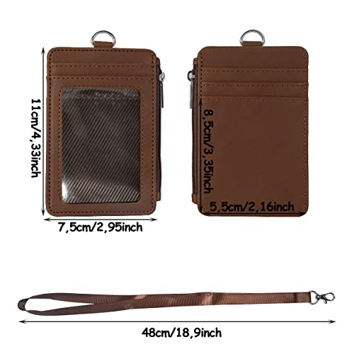 Porta Badge da Collo,2 Pezzi Portabadget,Porta Badge Verticale con Cordino Staccabile E Portachiavi,Portabadge Collo Cordino Portachiavi Porta Tesserino,Nero E Marrone