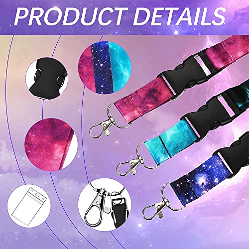 【Fashion Design】Abbiamo selezionato con cura 3 laccio portachiavi collo strisce di galassia colorati con diversi disegni.il design unico del cordino portachiavi è stampato su entrambi i lati di alta qualità,comodo da indossare.Puoi scegliere diversi colori di cordino porta badge da abbinare ai tuoi vestiti.