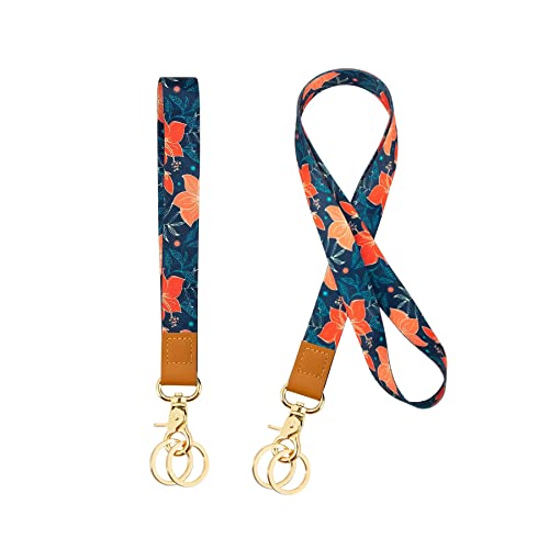 Porta Badge da Collo, Stampa Floreale Personalizzata Cinturino da Polso e Cordoncino da Collo, Per Porta Badge Identificativi, Chiavi, Fotocamera, Telefono Cellulare, Carte, Ufficio, Scuola (Arancia)