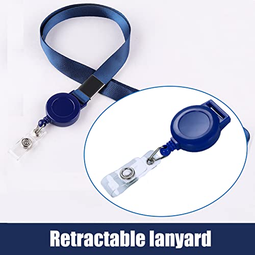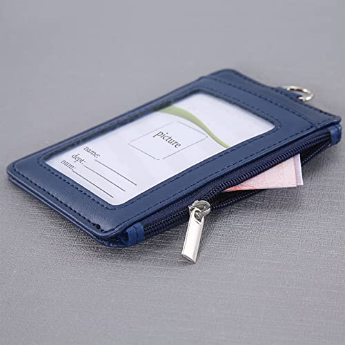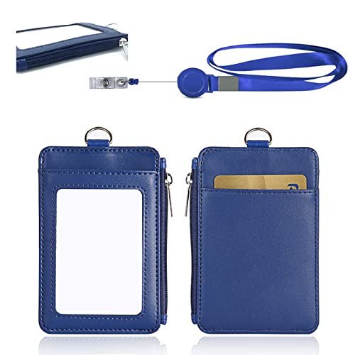 Porta Badge Pelle Artificiale con Cordino Retrattile, Facile da Identificare Blue 2 Lati Porta Tessera Porta Badge Collo Verticale Id Holder con Cerniera Pocket per Office School Business Exhibition