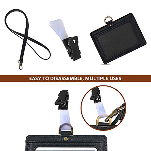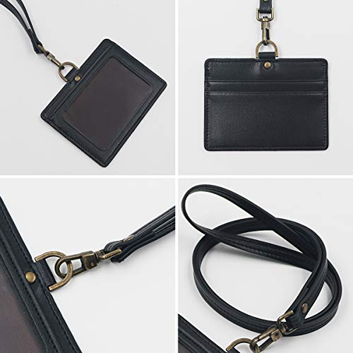 Porta badge con pelle, ID carte porta badge orientamento orizzontale, carta D'identità titolare, badge e portabadge,3"*4" (nero)