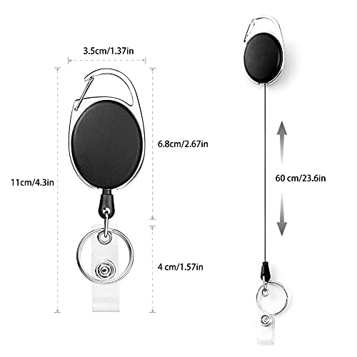 Dimensioni: Rotolo retrattile da 6,2 cm x 3,5 cm, 4 pezzi, con retrattile fino a 60 cm, ogni rotolo di badge ha un portachiavi e una fibbia in plastica,Design unico con elastico di lunghezza adeguata e facile da usare. Il portachiavi è un brillante ponte per la clip ID.