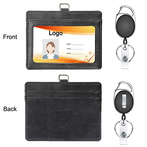 Porta Badge Retrattile a scomparsa con portachiavi clip retrattile id badge holder in pelle bidirezionale Id Card 3 Slot per schede per staff (horizontal porte badge)