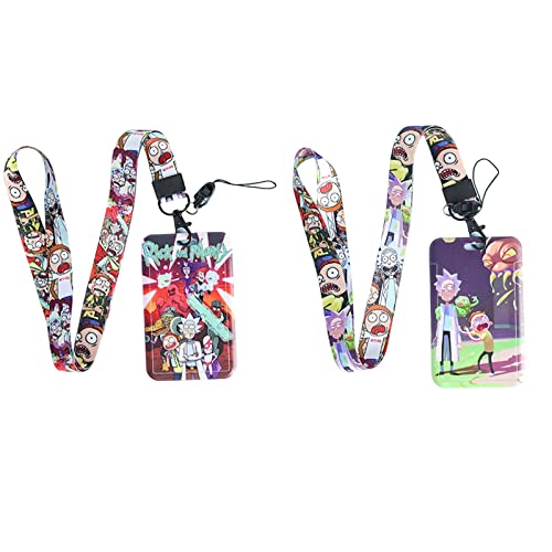 2 Porta Badge Rick and Morty con Cordino, Wopin- Porta Badge da Collo Rick and Morty e Cordino da Collo Rick and Morty, per le Carte/Badge, Ideale per Adulti/Adolescenti