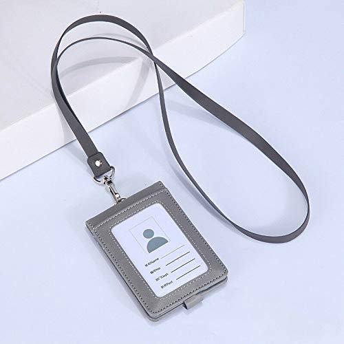 Porta badge verticale con cerniera, in pelle sintetica PU, con 1 finestra identificativa, 4 scomparti per tessere, cordino da collo staccabile in poliuretano da 55,9 cm (rosso/blu/grigio/nero), grigio