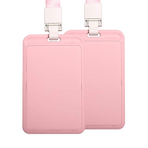 2 x Porta badge verticale con cordino da collo, targhetta per nome, tessere per studenti, biglietti da lavoro. rosa