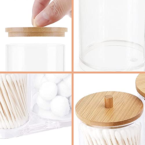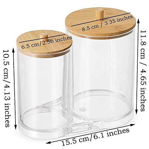 Materiali Alta Qualità: Il supporto per cotton fioc è realizzato in materiale acrilico trasparente. I coperchi sono realizzati in legno di alta qualità, con bordo liscio, per essere sicuri e resistenti, per non rompersi. riutilizzabile.