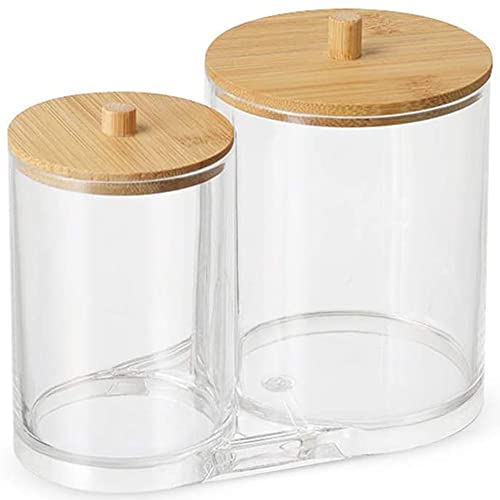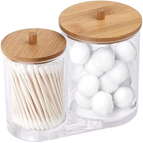 Design 2 in 1: La scatola del cotton fioc è progettata con 2 scomparti separati per riporre separatamente batuffoli di cotone e dischetti per il trucco e il design trasparente ti consente di vedere a colpo d'occhio. Chic ed elegante, mantenendo tutto pulito e organizzato.
