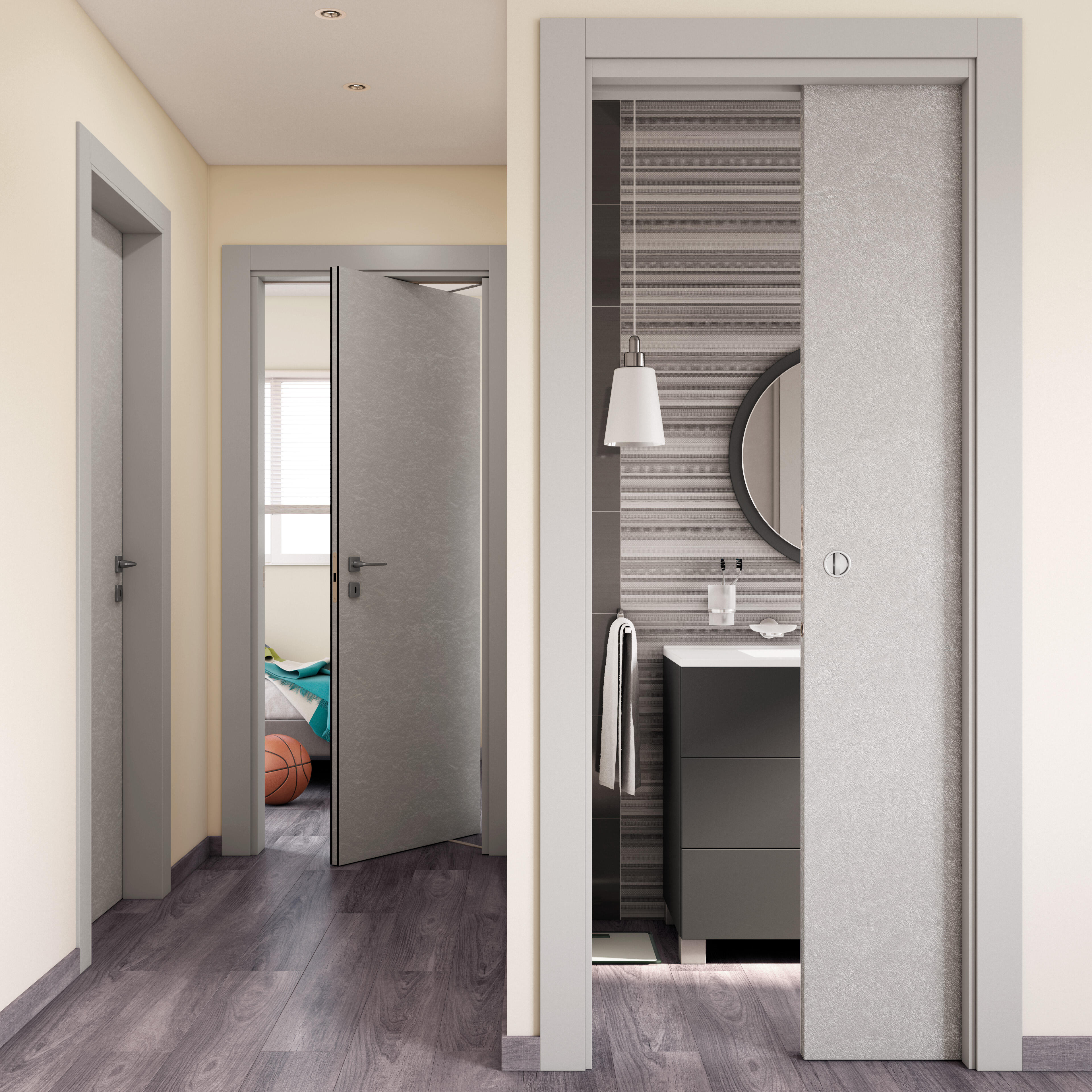 In laminato, telaio dritto, coprifili ad incastro. Maniglia da acquistare separatamente. Qualità Excellens, porta di alta qualità che oltre ad essere funzionale valorizza anche gli ambienti. Apertura a battente comoda e funzionale. Finitura resistente e funzionale. Il laminato resiste ai graffi ed è molto facile da pulire. Chiusura magnetica silenziosa. Effetto spazzolato che riproduce le venature del legno donando un effetto materico molto naturale