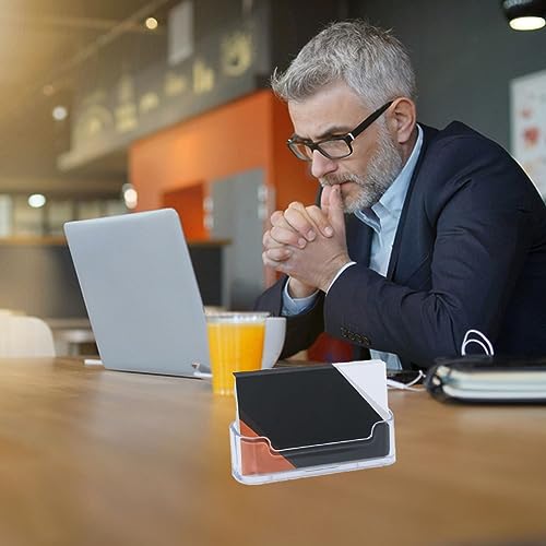 Trasparente chiaro: Porta biglietti da visita design trasparente a strato singolo rende il tuo biglietto da visita chiaramente visibile, puoi usarlo sulla scrivania, risparmiare spazio e semplificare il tuo lavoro.