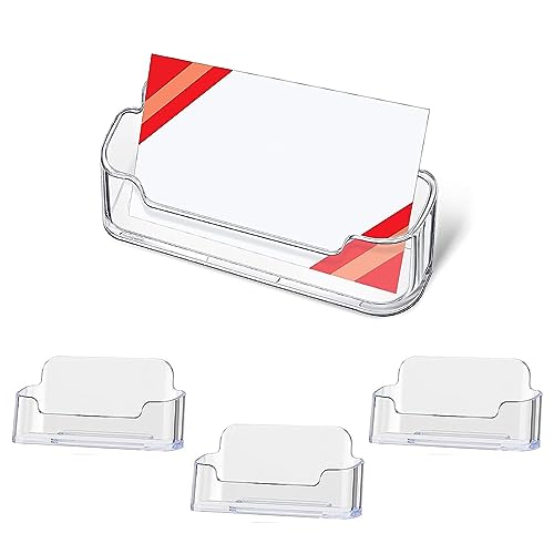 Porta Biglietti da Visita, Portabiglietti da Visita da Scrivania, Porta Biglietti da Visita in Plastica, Porta Biglietti da Visita da Tavolo e Scrivania per Casa e Ufficio, Trasparente, 4 Pezzi