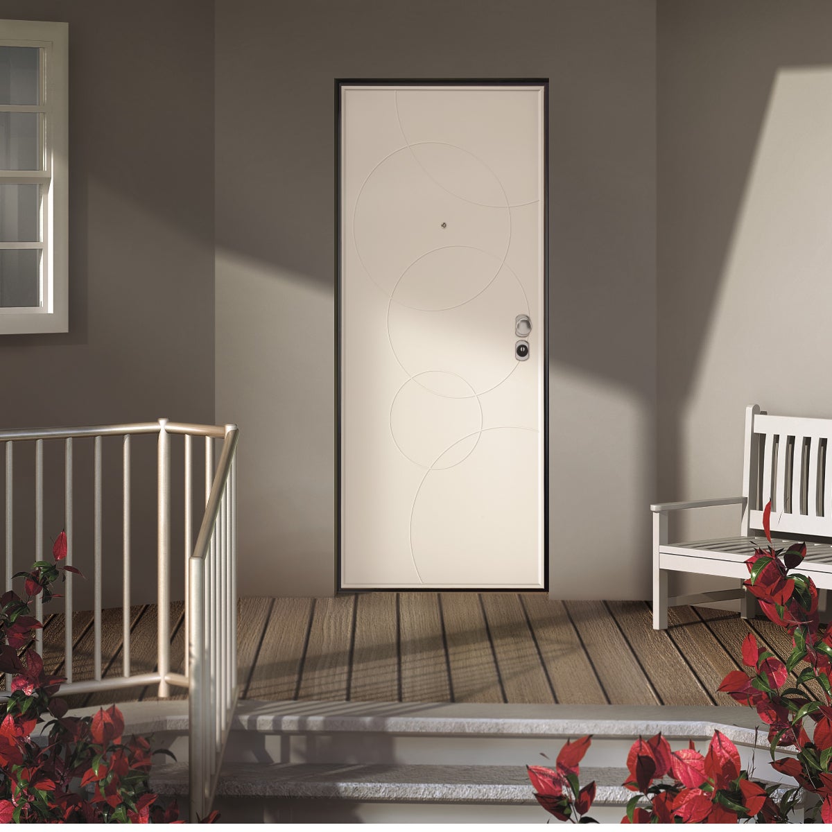 Porta blindata in classe antieffrazione 3, misure 80x210cm, senso apertura SX, serratura a cilindro europeo con defender e 5 chiavi padronali, 13 punti d'ancoraggio, pannello interno liscio 5mm Noce, esterno mdf 12mm Avorio, stipite/carenatura nero, maniglieria interna bronzo/esterna argento, falso telaio compreso. Adatta per ambienti esterni.