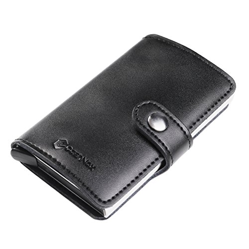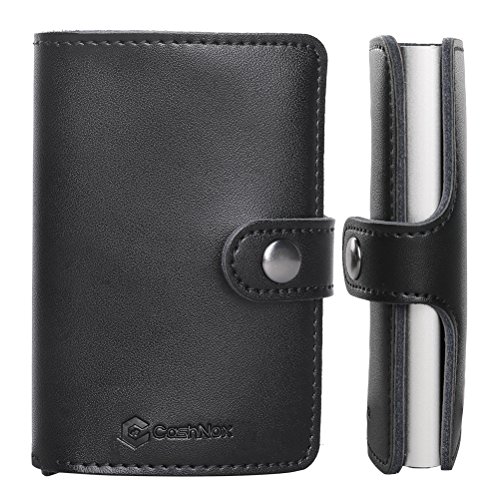 Porta Carta di Credito - CashNox Porta Carte di Credito RFID, Pop-up Pulsante (Nero(vera pelle))