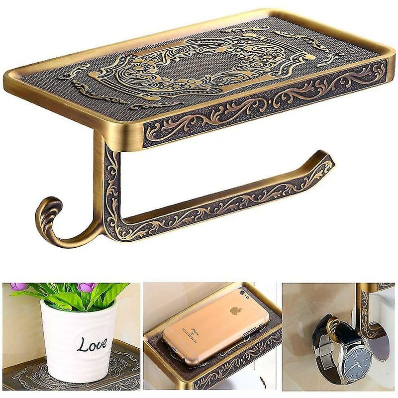 per riporre oggetti o per candele su scaffali e altri oggetti per creare espositori decorativi Versatile e pratico Il design ampio e ampio non solo può contenere il telefono, ma può anche essere utilizzato per pannolini, salviettine umidificate, fiori, piccoli libri, deodoranti per ambienti, bicchieri o altre decorazioni. Un porta carta igienica ti porterà grandi vantaggi. Perfetto Design 1. Design antico, molto decorativo e pratico 2. Il labbro curvo verso l'alto impedisce telefoni, oggetti 3. Braccio semiaperto, facile da appendere e cambiare le carte 4. Con gancio portachiavi ecc. Facile installazione Il porta carta igienica in bronzo spazzolato è dotato di un disegno a vite nascosto. Può essere facilmente installato su una varietà di superfici. Aprire l'installazione a sinistra oa destra in base