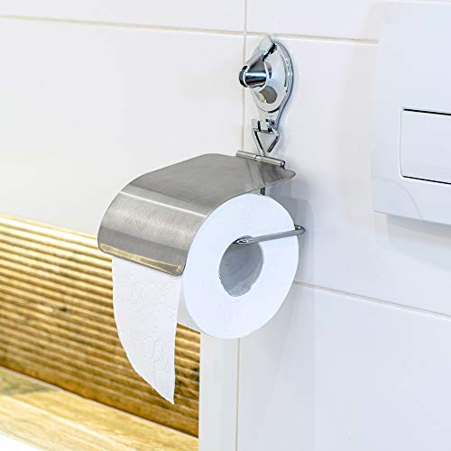 Porta della carta igienica kadax, realizzato in acciaio inossidabile, supporto per la carta igienica con ventosa, senza perforazione, supporto a parete (con coperchio)