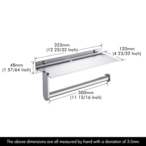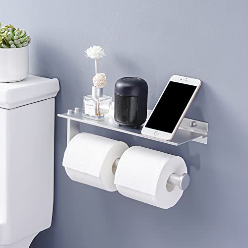 KES Porta Carta Igienica con Mensola Doppio Portarotolo Bagno Porta Rotolo Carta Igienica in Alluminio Supporto Muro Parete Argento, BPH401