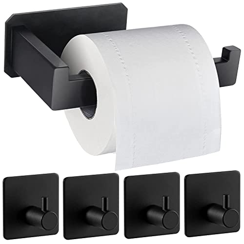 Porta carta igienica, porta carta igienica a parete con 4 ganci, porta carta igienica adesiva per bagno e cucina, colore: nero