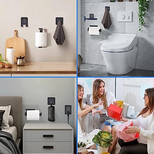 Porta Carta Igienica Porta Carta Igienica Senza Forare Porta Rotolo Porta Carta Igienica Autoadesivo in Acciaio Inox per Toilette, Bagno, Cucina, Porta Carta Igienica Nero con 4 Ganci