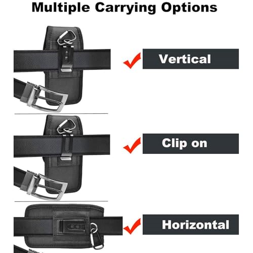 Opzioni di trasporto multiple e anello porta penna incorporato: gli utenti possono scegliere di indossare verticalmente o orizzontalmente sulla cintura. C'è anche un gancio metallico che puoi attaccare al tuo zaino o borse. Funzione di inserimento della penna: È possibile inserire la penna in entrambi i lati della casella verticale