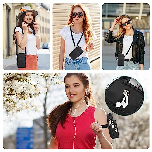 【Contenuto del set】Riceverete 1 x borsetta porta cellulare donna nero e 1 x portacarte nero in pelle ambientale PU.Tracolla porta cellulare donna ha un design più ampio della tracolla e una porta esterna per le cuffie sul retro;
