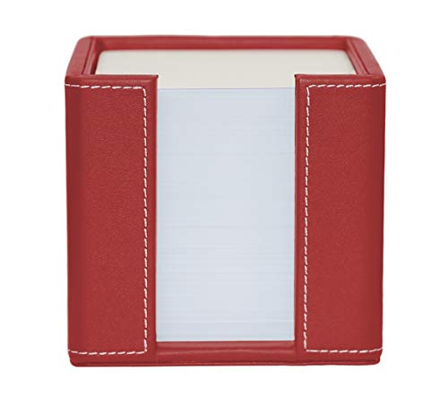 Porta cubo per promemoria, rosso, ecopelle, fornito con 1.000 fogli di carta