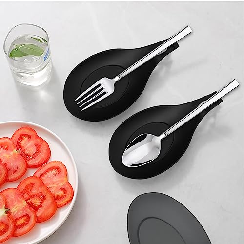 2 Pzi Porta Cucchiaio Silicone Porta Cucchiaio da Cucina Spoon Rest Poggia Utensili da Cucina Appoggia Cucchiaio Resistente al Calore Poggia Cucchiaio per Spatole Cucchiai Pentole (Grigio)