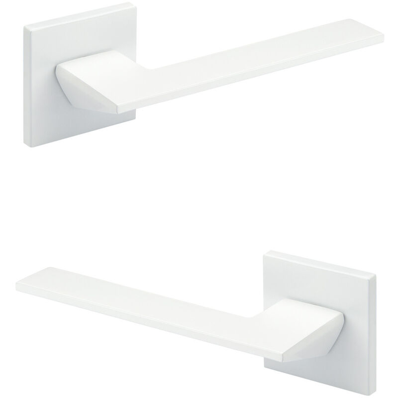 Maniglia per porte Q01.50, colore: bianco opaco, lunghezza maniglia: 105 mm, dimensioni rosetta (LxH): 52x52 mm, perno maniglia(Ø 8 mm): 105 mm per spessore porta di 37-58 mm Maniglie di design per porte di bagni e stanze - Sostituisci le obsolete maniglie delle porte delle stanze e dei WC con le migliori maniglie moderne a rosetta. Premium, nella lavorazione e nel design - I nostri raccordi a rosetta in alluminio legato non convincono solo per il loro nobile aspetto materiale e la loro forma spigolosa. Nobile, senza tempo, rappresentativo: set di porte di design per porte di bagni e camere Il design fa la differenza! L'architettura moderna è minimalista, si limita all'essenziale. Nelle stanze moderne, l'assenza di rosette delle porte è un elemento di design. Riducete all'essenziale gli accessori delle vostre porte e sostituite le maniglie obsolete con quelle ultramoderne. Gli ambienti rappresentativi dell'abitazione e dell'ufficio beneficiano di soluzioni contemporanee di maniglie