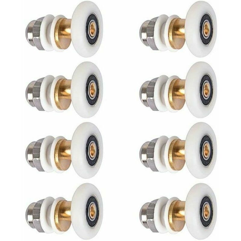 Nylon e rame - Buona elasticità, buona resistenza all'usura Economico - Set di 8 rulli, intercambiabili più volte, pezzi di ricambio in un unico ordine Dimensioni - Diametro ruota - 25 mm, Spessore ruota: 5,5 mm, Lunghezza totale: circa 32 mm Una sostituzione perfetta - Nel tempo i rulli dovranno essere sostituiti. Un cacciavite è tutto ciò che serve per la riparazione Adatto per - Per aperture di porte in vetro: 10~12mm;