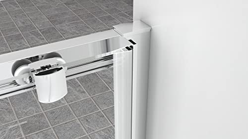 Porta doccia scorrevole dal design squadrato, installazione in nicchia, chiusura magnetica