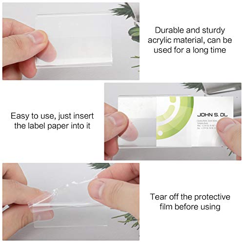 PORTA ETICHETTE: questi porta etichette in plastica trasparente adottano un design trasparente, che è molto chiaro e ha un ottimo effetto visivo, puoi vedere chiaramente le informazioni sull'etichetta. Inoltre, c'è una pellicola protettiva sulla superficie, si prega di staccare la pellicola protettiva prima dell'uso.