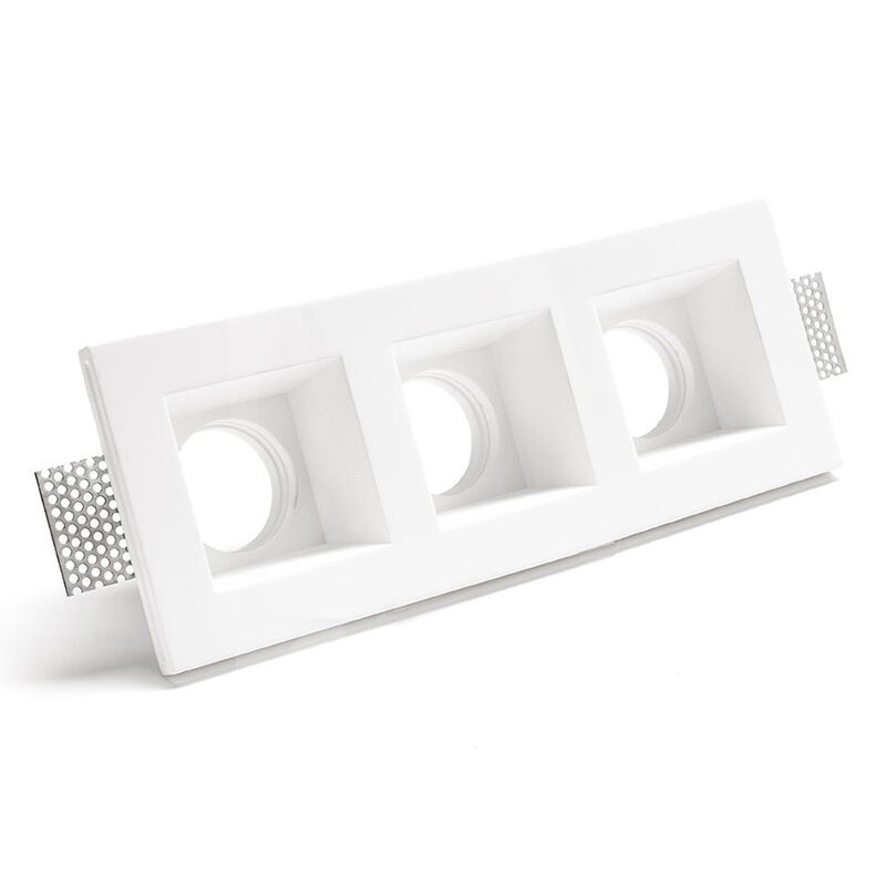 Porta Faretto Gesso Incasso Bianco 3 Luci Soffitto Quadrato Verniciabile GS-5054 Portafaretto in gesso ad incasso adatto a qualsiasi ambiente e con la possibilità di essere verniciato ed ottenere un effetto a scomparsa. Caratteristiche Tecniche: Portafaretto incasso Modello: GS-5054 AC220-240V Frequenza: 50Hz Materiale: Gesso Colore: Bianco Forma: rettangolare Verniciabile Angolo di illumazione: 70°C circa Alette laterali incasso Grado di protezione: IP20 Dimensioni: 28 l x 10h x 4 s cm circa Peso: 0.600 kg circa La confezione contiene: Nr. 1 Plafoniera gesso incasso Nr. 2 alette