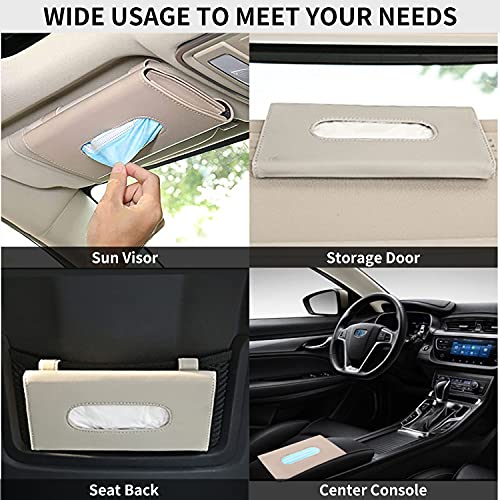 Ampia gamma di applicazioni: il portatovaglioli in pelle PU può essere fissato al parasole dell'auto, sul sedile posteriore dell'auto e nella portiera dell'auto. Il porta fazzoletti per auto è adatto per la maggior parte delle auto ed è perfetto anche per camion, barche e camper.