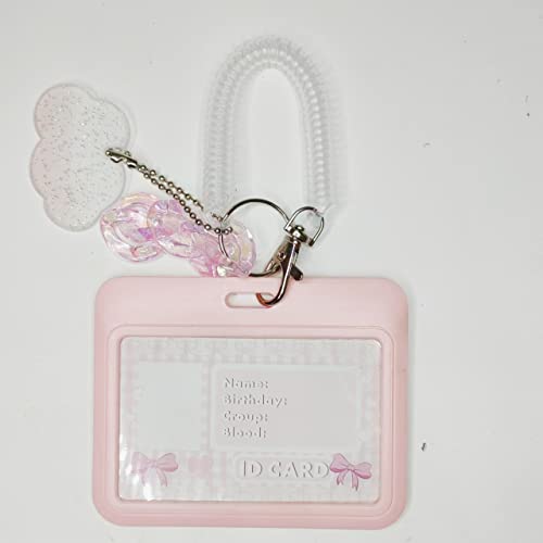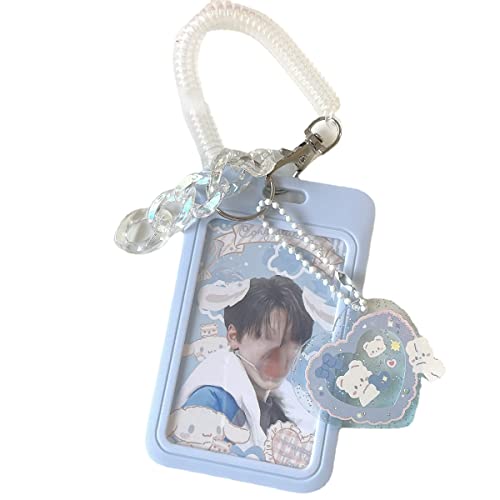 Porta fototessera Kpop, 7,6 cm, in acrilico trasparente, portachiavi e porta badge Fairycore per carte di credito, protezione indie, con ciondolo a forma di cuore (blu, verticale)