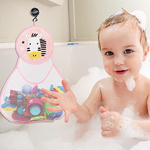 Porta Giocattoli da Bagno Sacca Rete Porta Giocattoli da Appendere Porta Giochi Doccia Organizzatore Bagno Bambini Contenitore per Giocattoli per Bambini (Zebra)