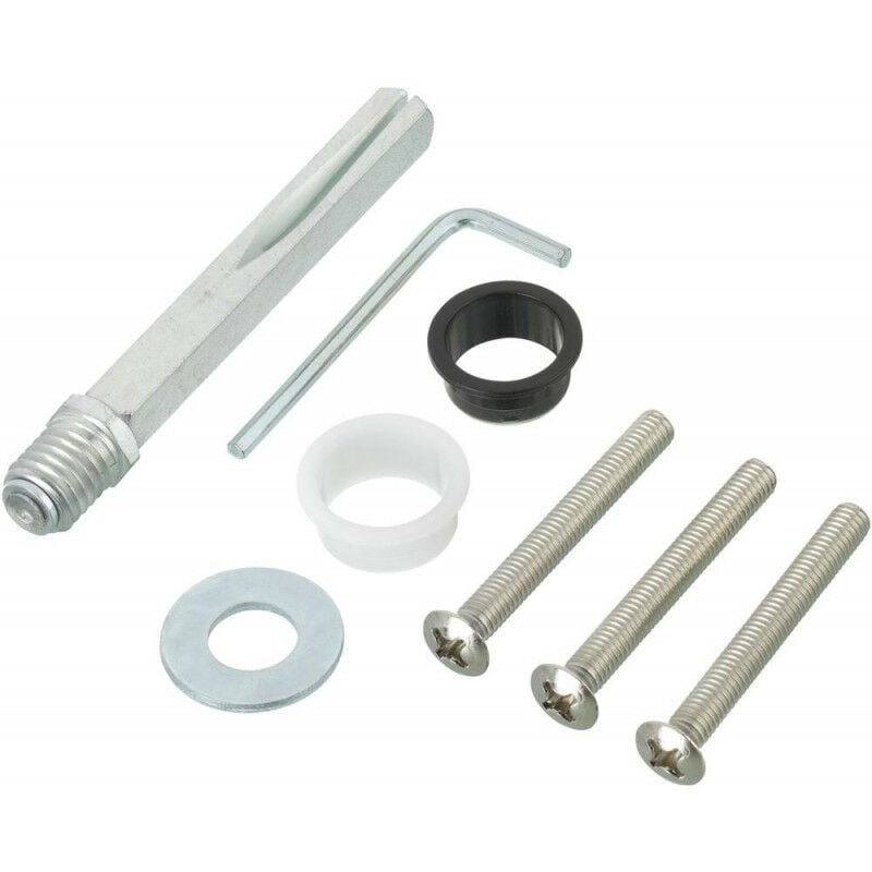 Set di montaggio per porte da camera - Perno in acciaio. zincato - Quadro 8 mm - Incavo per croce di guida - Testa a lente - Filettatura a rullino M12 - Numero di viti 3 pezzi - Per ferramenta intercambiabili Consegna: Viti incluse. Chiavi a bussola esagonali. Anelli di guida e rondelle.