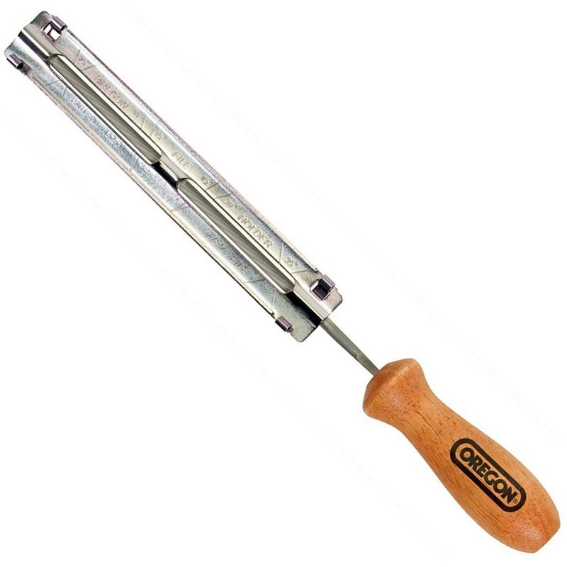 Completo di manico, lima e guida. ottimo per affilare i taglienti delle catene per motosega. le tacche sul bordo della guida agevolano l'allineamento della lima per ottenere l'angolo corretto di affilatura sulla piastra superiore del tagliente. adatta per