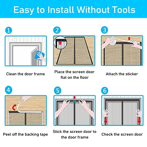 【Facile da installare】: la porta dello schermo è semplice da installare. Nessuna vite, chiodi e altri strumenti necessari. Applicare il nastro adesivo sul telaio della porta e applicarlo sulla parte superiore della porta dello schermo, ed è fatto! La tenda di mosca rimarrà in posizione per tutta l'estate. È rimovibile, portatile, pieghevole e lavabile. Pertanto, quando arriva l'inverno, puoi rimuoverlo e conservarlo fino al prossimo anno.
