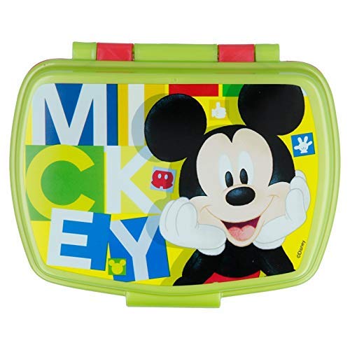 Set porta merenda per bambini, bottiglia d'acqua e sacca per merenda a corde. Con disegni colorati | Porta merenda da scuola | Materiale per il ritorno a scuola (Topolino)