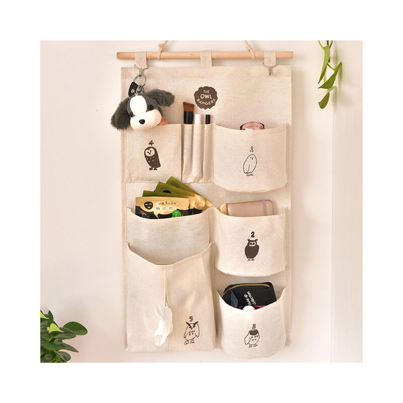 Features:1.Lovely owl design with hanging type, easy to use and also saving space.2.Can store items, such as mobile phones, keys, glasses, cosmetics, scissors, etc.3.Can be hanged on anywhere, such as the bedroom, study, bathroom, kitchen, office, etc, which occupies little space.DescriptionItem Name: Canvas storage bagMaterial: Canvas + Wooden StickColor: white, green, pink, graySize: 35cm x 60cm/13.7" x 23.6" (Approx.)Fit for: Living Room, Bedroom, Bathroom, Kitchen, Office, etcPackage includes1*Storage bag(with stick)Notes1.Due to the light and screen setting difference, the item's color may be slightly different from the pictures.2.Please allow slight dimension difference due to different manual measurement.