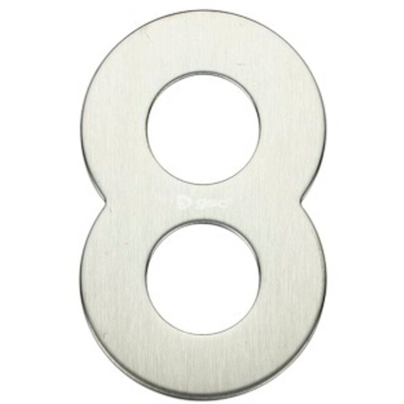 Numeri di porta con adesivo Materiale: acciaio inossidabile Finitura nichel satinato Spessore: 2mm Montaggio: adesivo. Numero 8