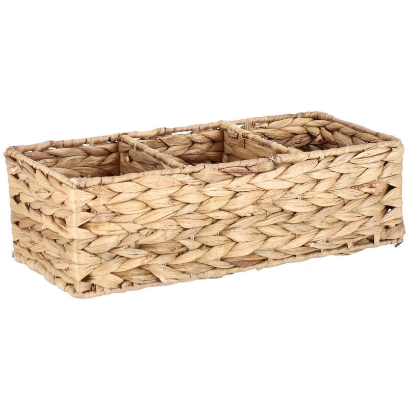Il porta oggetti 3 divisori Kalaw è un pezzo raffinato e funzionale progettato per offrire soluzioni di organizzazione eleganti nella tua casa. La struttura del porta oggetti è realizzata con giacinto d'acqua, conferendo un aspetto naturale e un tocco organico. Con tre divisori, questo porta oggetti ti consente di organizzare e separare gli oggetti in modo ordinato, contribuendo a mantenere l'ordine negli spazi domestici. Il giacinto d'acqua utilizzato per la sua costruzione non solo aggiunge un elemento decorativo, ma offre anche resistenza e durabilità. Il filo in acciaio è utilizzato per fornire una struttura solida e sostenere la forma del porta oggetti. Questo materiale conferisce stabilità al prodotto, garantendo che mantenga la sua forma nel tempo. Un aspetto distintivo di questo porta oggetti è la sua struttura senza cartone all'interno. Questo design permette al porta oggetti di essere più leggero e flessibile, oltre a essere ecologico. In sintesi, il porta oggetti 3 divisori