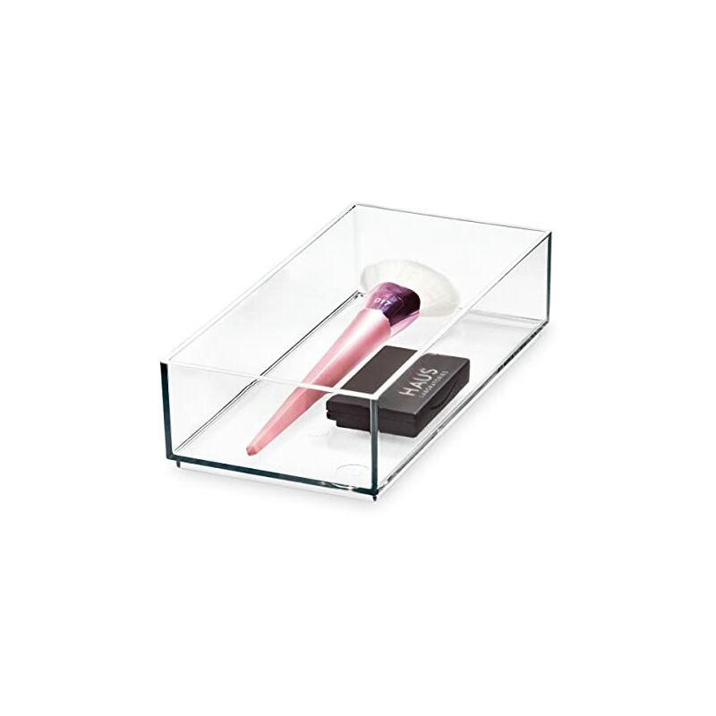 IDesign Porta, Organizer cassetto per Trucchi della Collezione Firmata da Sarah Tanno, Portatrucchi organizzatore Bagno combinabile in plastica, Trasparente, 10,2 x 20,3 x 5 cm 10,2 x 20,3 x 5 cmStyle: Portatrucchi da cassetto - Piccolo